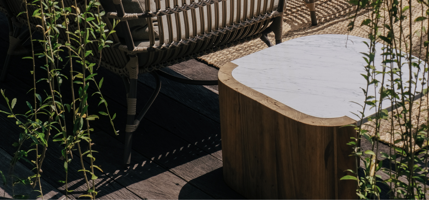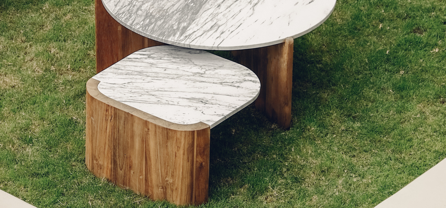 Sculptural inspirations meet the beauty of natural materials. 70 is a collection of coffee tables in teak wood and marble. The latter version is made up of two parts featuring different heights, each of which can be used by itself or with the other to create a dynamic, visually-light coffee table.