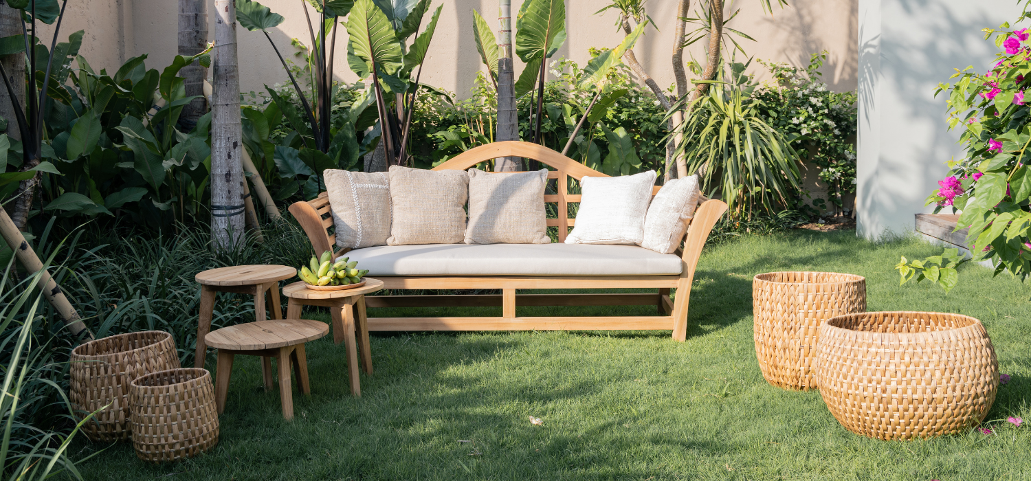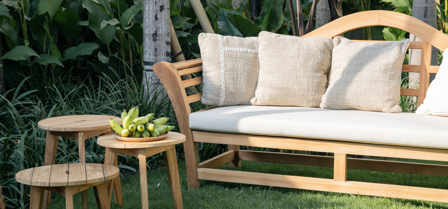This bench from the Alessia collection expresses classic solidity conveyed by its exceptionally thick teak legs and frame, and by its well-defined personality, which is strong enough to define the entire outdoor space.