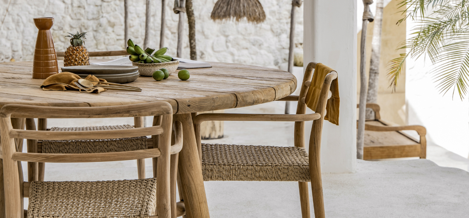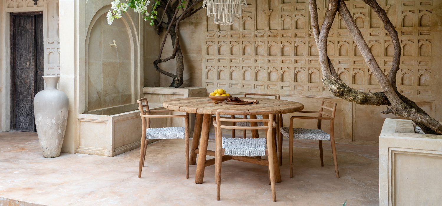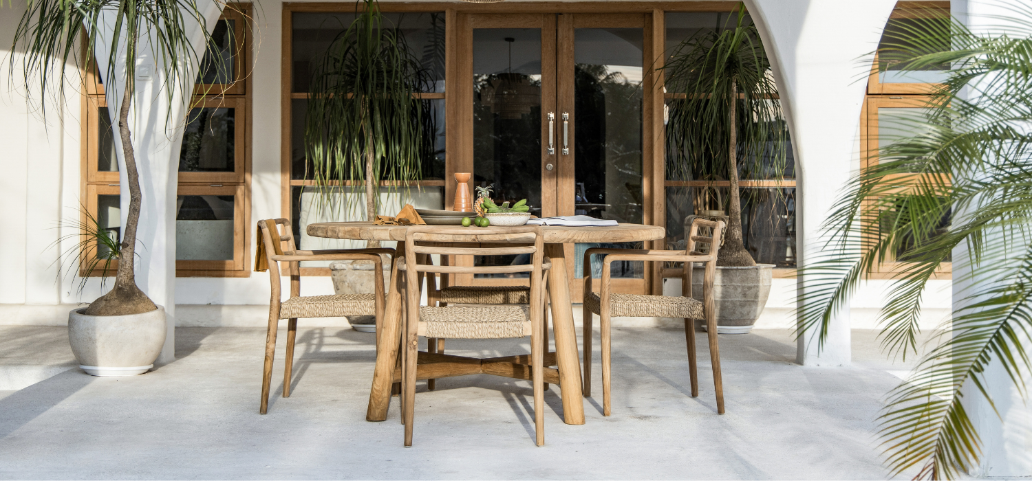 A collection of dining chairs presents a tasteful blend of elegance and natural aesthetics. Crafted meticulously from durable teak wood, Alisee chairs embody both quality and sustainability.