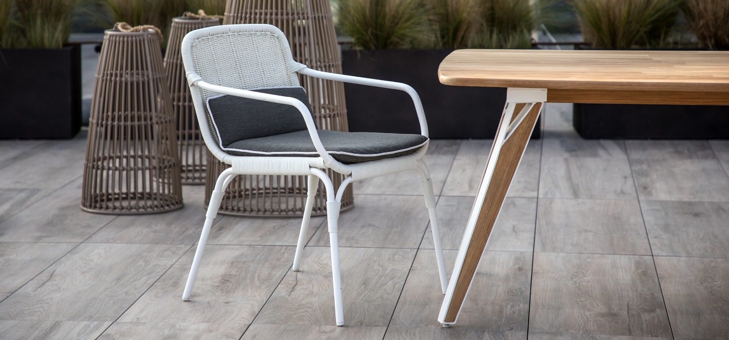 Amy is a sophisticated assortment of dining chairs that will enhance the elegance and style of any dining setting. This collection presents two unique choices, each intricately designed with meticulous attention to detail. The first option showcases the allure of aluminum spokes, contributing a sleek and modern ambiance. Its impeccable contours and delicate lines make it an excellent selection for individuals in search of a contemporary aesthetic. Alternatively, the second chair showcases skillfully woven elements, adding a touch of refinement and traditional allure. Both options assure optimal comfort and durability, establishing Amy as the perfect choice for those who value exquisite craftsmanship and impeccable design.