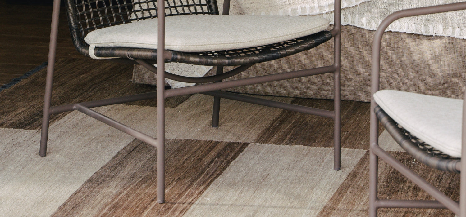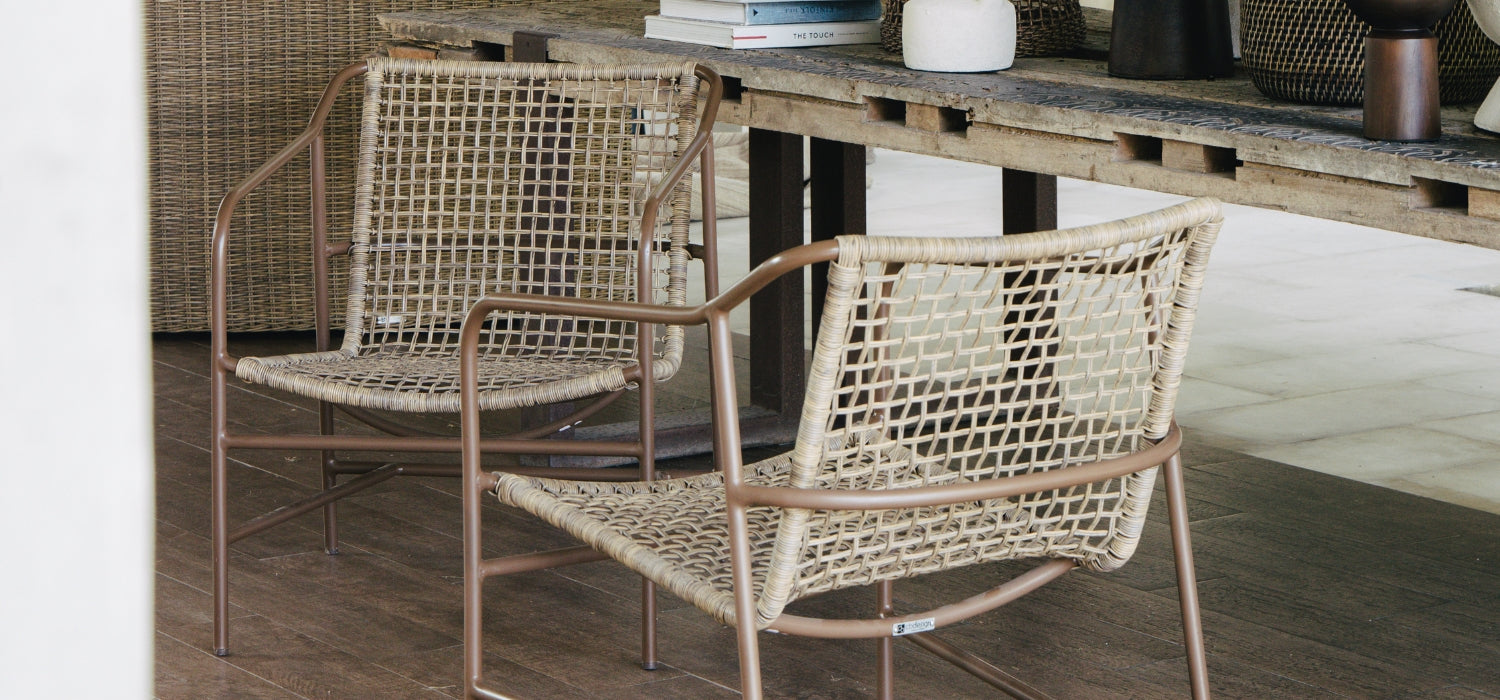 Stackable chairs in woven rope and aluminum, ideal for giving your outdoor spaces a suggestive and charming impression. The warm and lush shades give the final touch to an outdoor that leaves its mark: get comfortable and breathe the breeze of style.