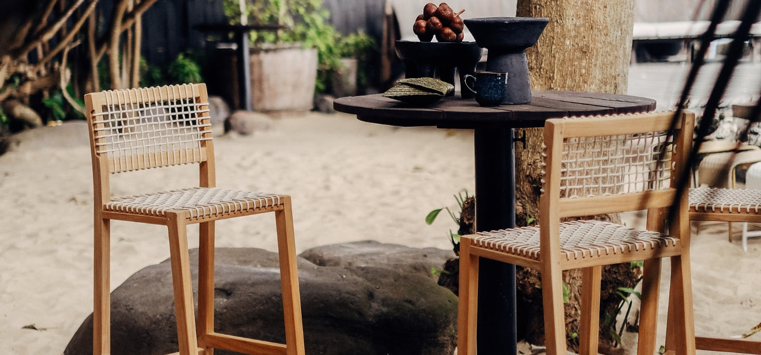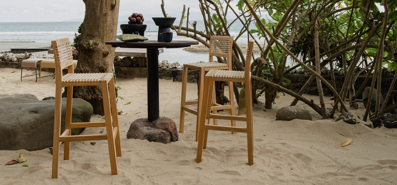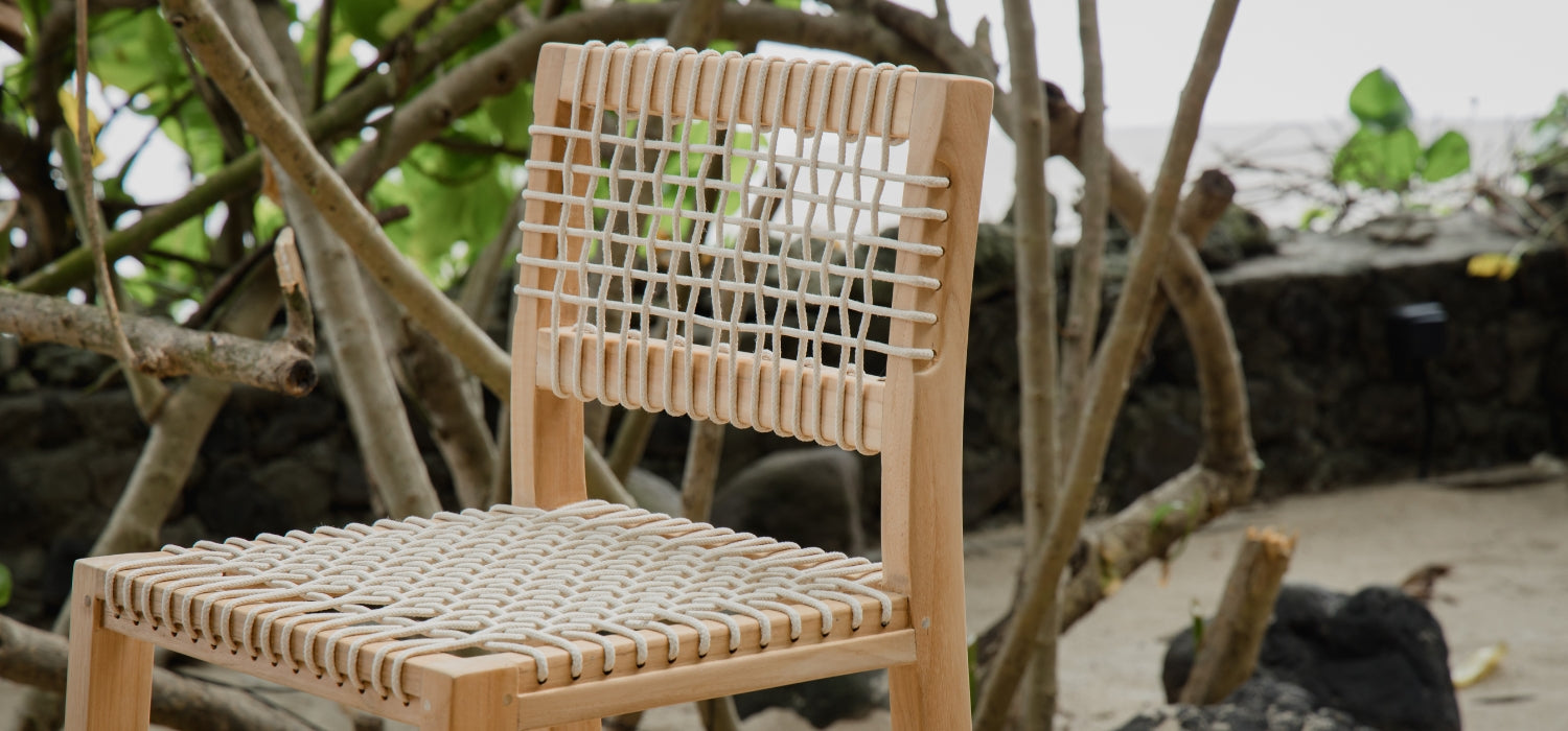 The harmonious union of teak and rope, available in several colors,