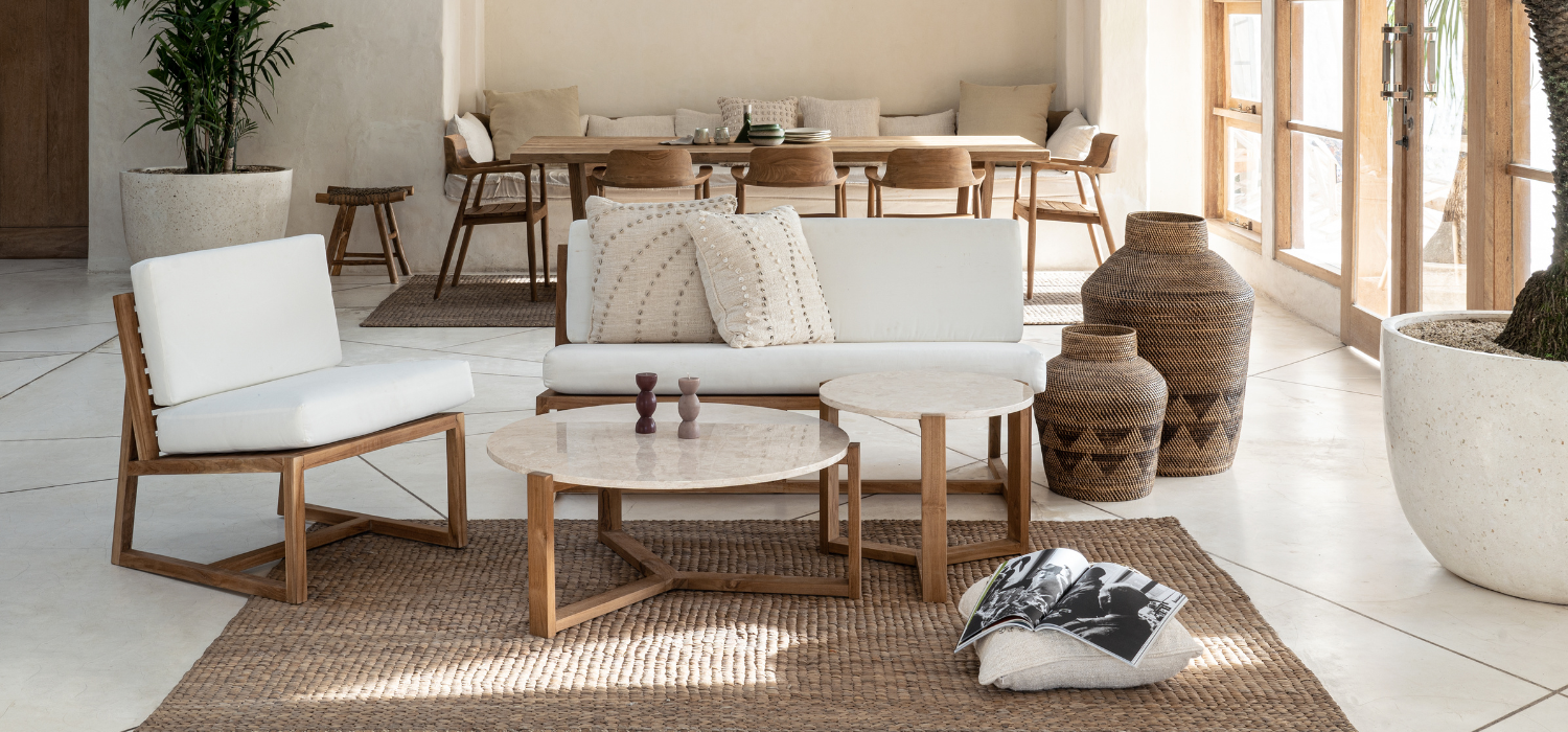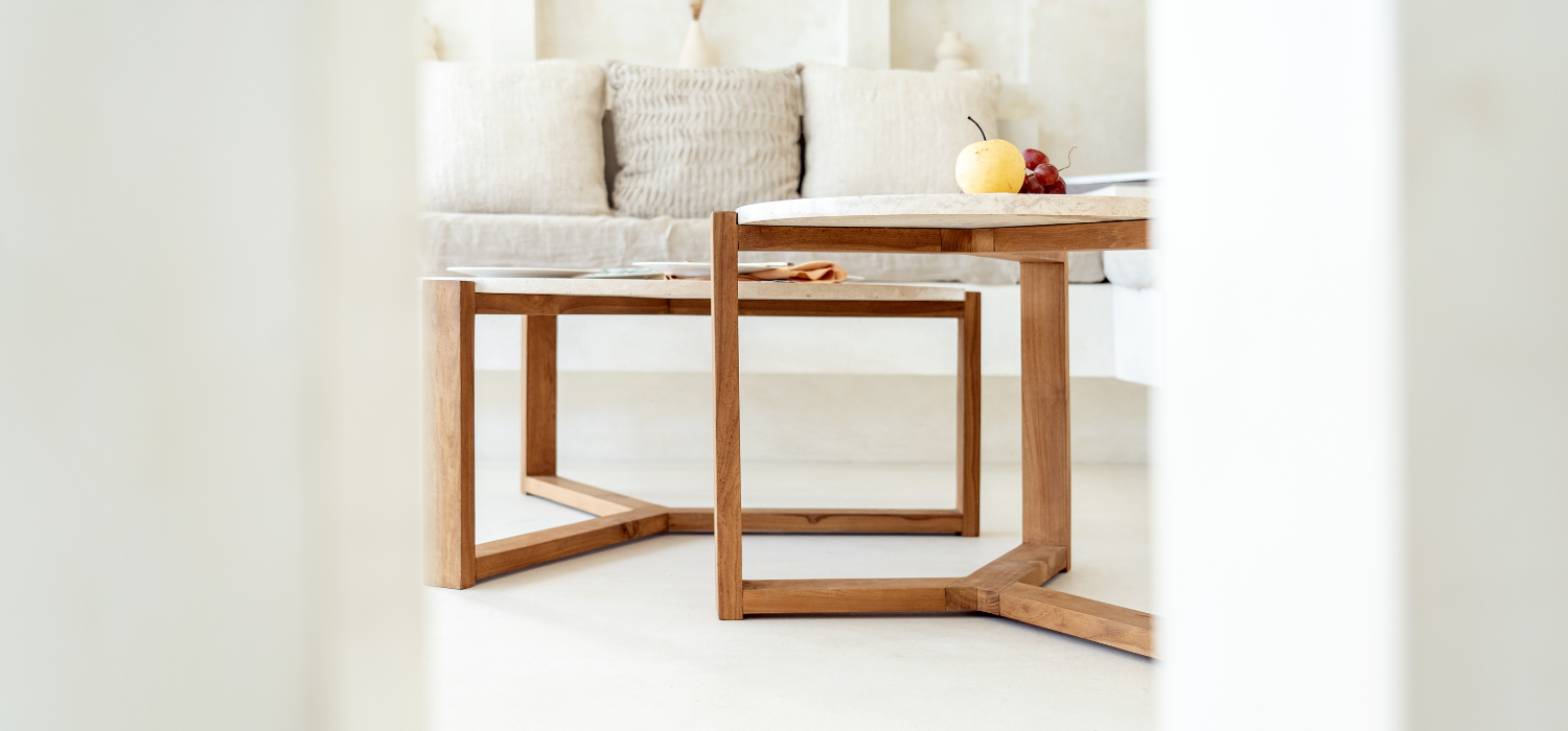 Delta offers a captivating selection of coffee tables adorned with a natural teak wood base complemented by marble tops in various shades and patterns. Craftsmanship at its finest, these coffee tables feature a blend of elegance and artistry.