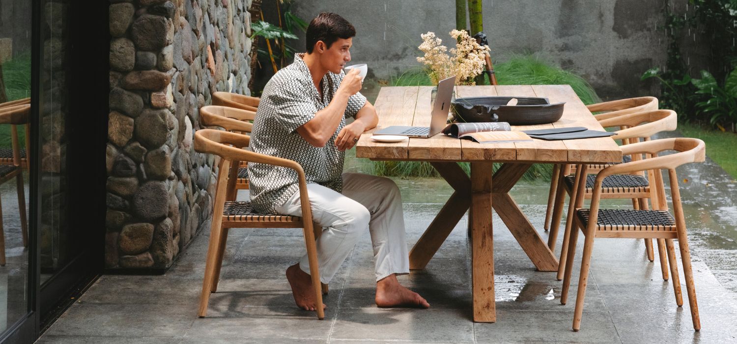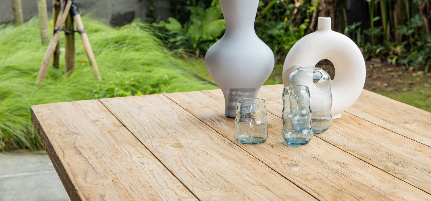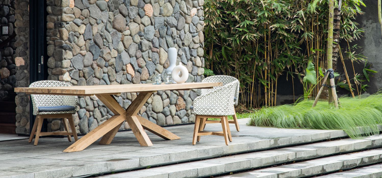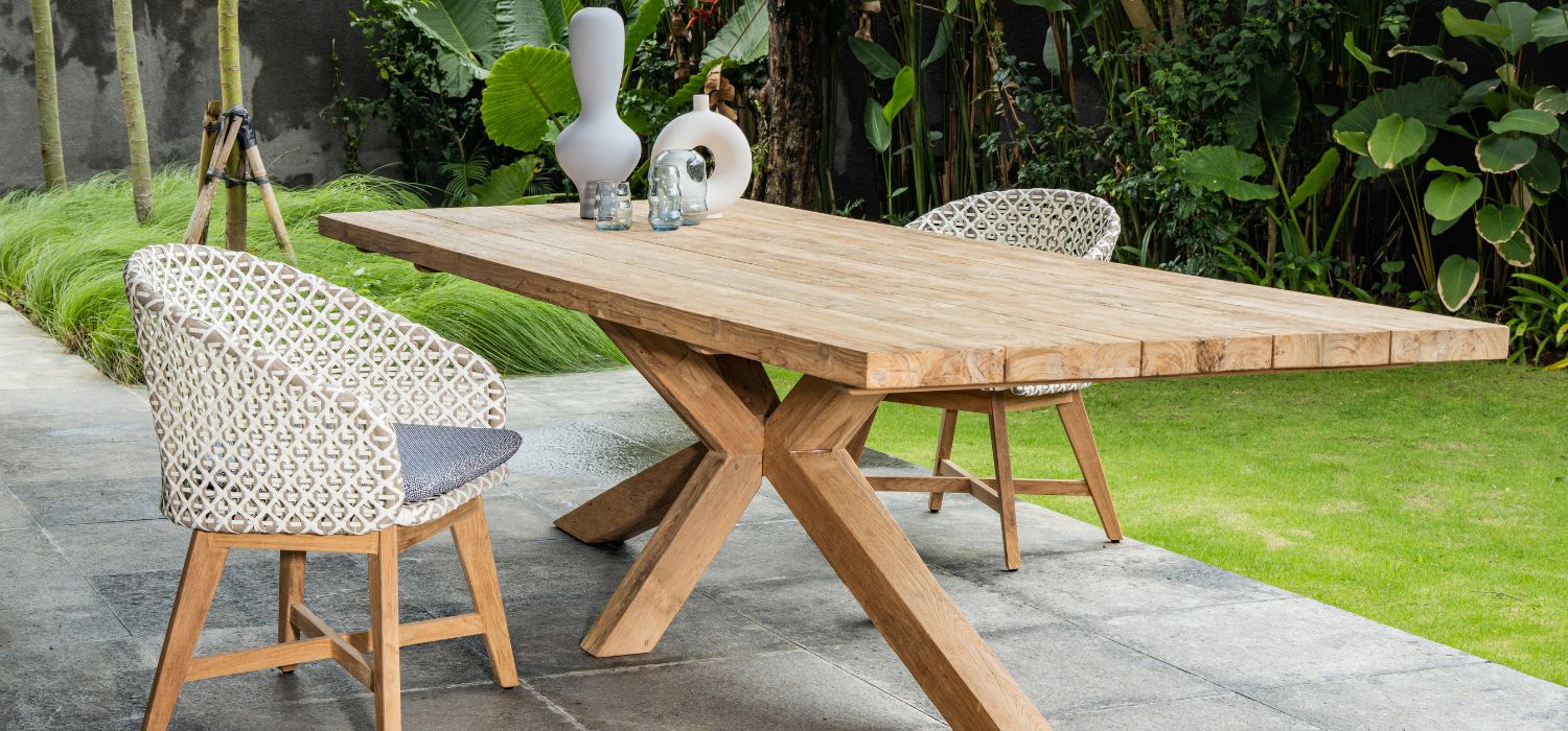 Sturdy and solid, just like a majestic tree that gets itself noticed in the forest. The large top of the rectangular Emely table is supported by legs that cross to form the base. Its recycled teak wood frame lends a natural, clean-cut appearance to the table.