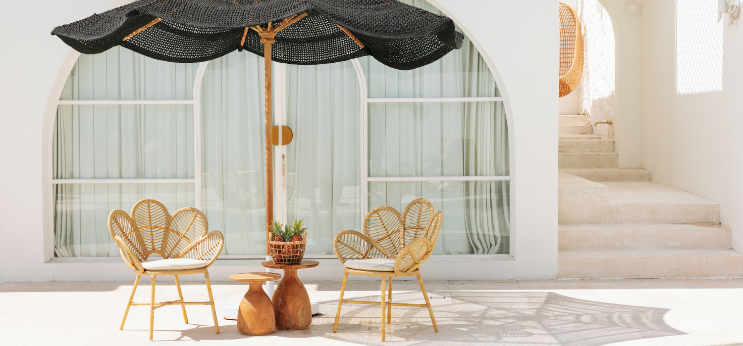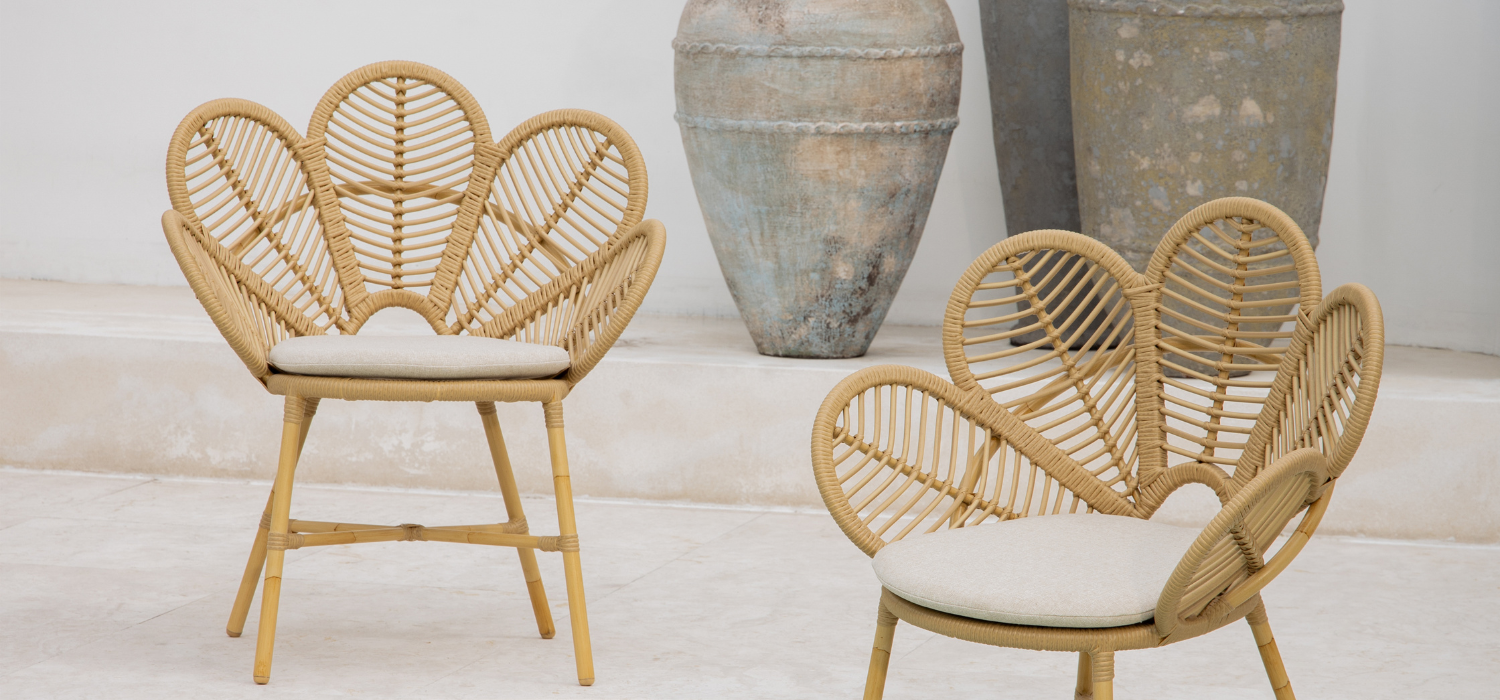 The veins and knots of the Manao cane that adorns Flora’s frame are hand-painted in varying planes of shades, providing a touch of artistic flair. The synthetic spokes, measuring 8 mm in diameter, further enhance the chair’s durability and stability. Designed in the shape of a delicate flower, the Flora relax chair offers both comfort and aesthetic appeal.