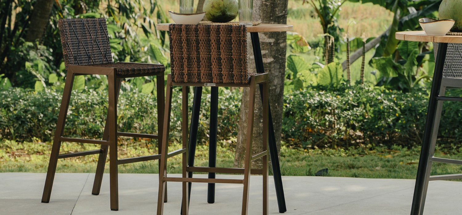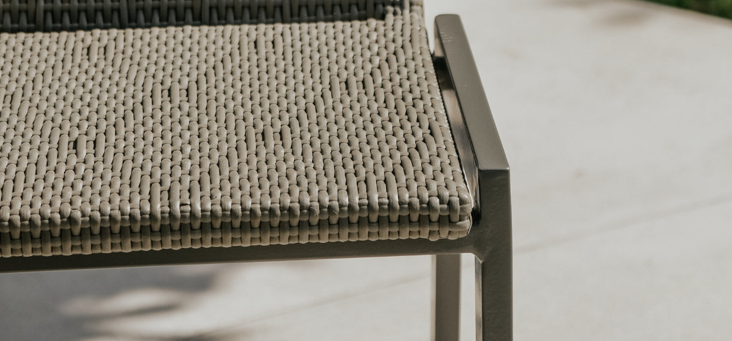 With its synthetic seat and elegant diamond-shaped pattern, the Gatsby bar stool – belonging to the homonymous collection – draws its inspiration from the pleasure of sitting comfortably while viewing the world from above. Its solid frame is made of aluminium.