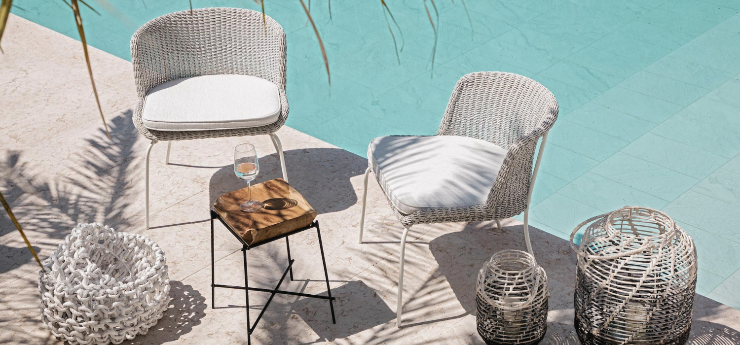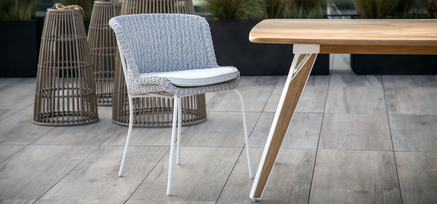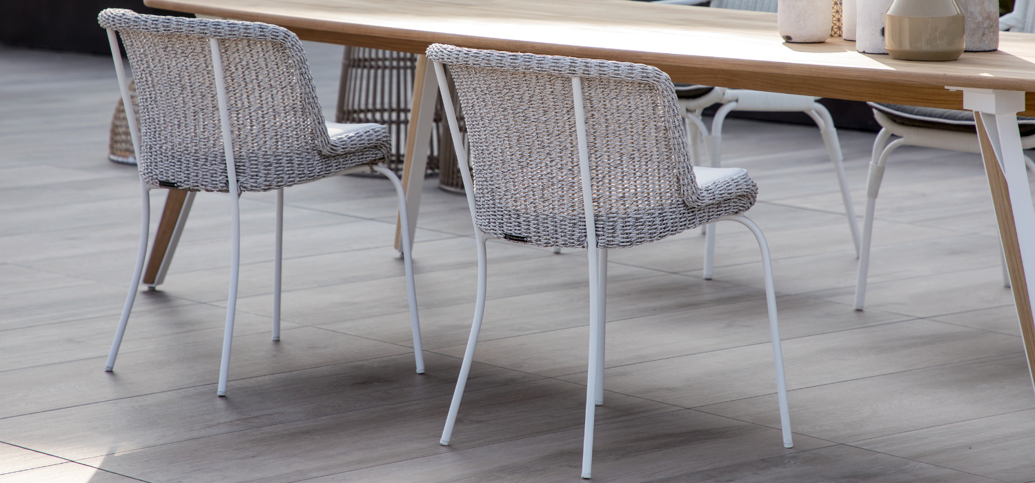 Ileana by designer Carlo Basso is the comfortable and versatile seat, in the dining chair or armchair version, suitable for all natural scenarios. The particular processing of the synthetic fiber, combined with the aluminum structure, creates a material contrast that amazes for its elegance.