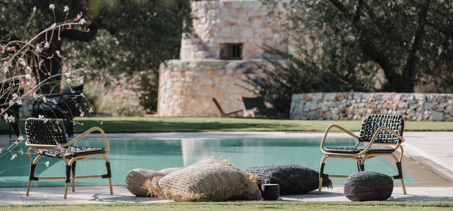 Kisa is a collection of timeless styles, which includes both the dining chair, with or without armrests, and the small armchair. The distinctive feature that makes each chair special is the aluminum structure, entirely hand-painted by skilled craftsmen who, through careful and delicate work, reproduce the natural shades of rattan. The chairs are unique pieces, made to furnish any space and to last over time.